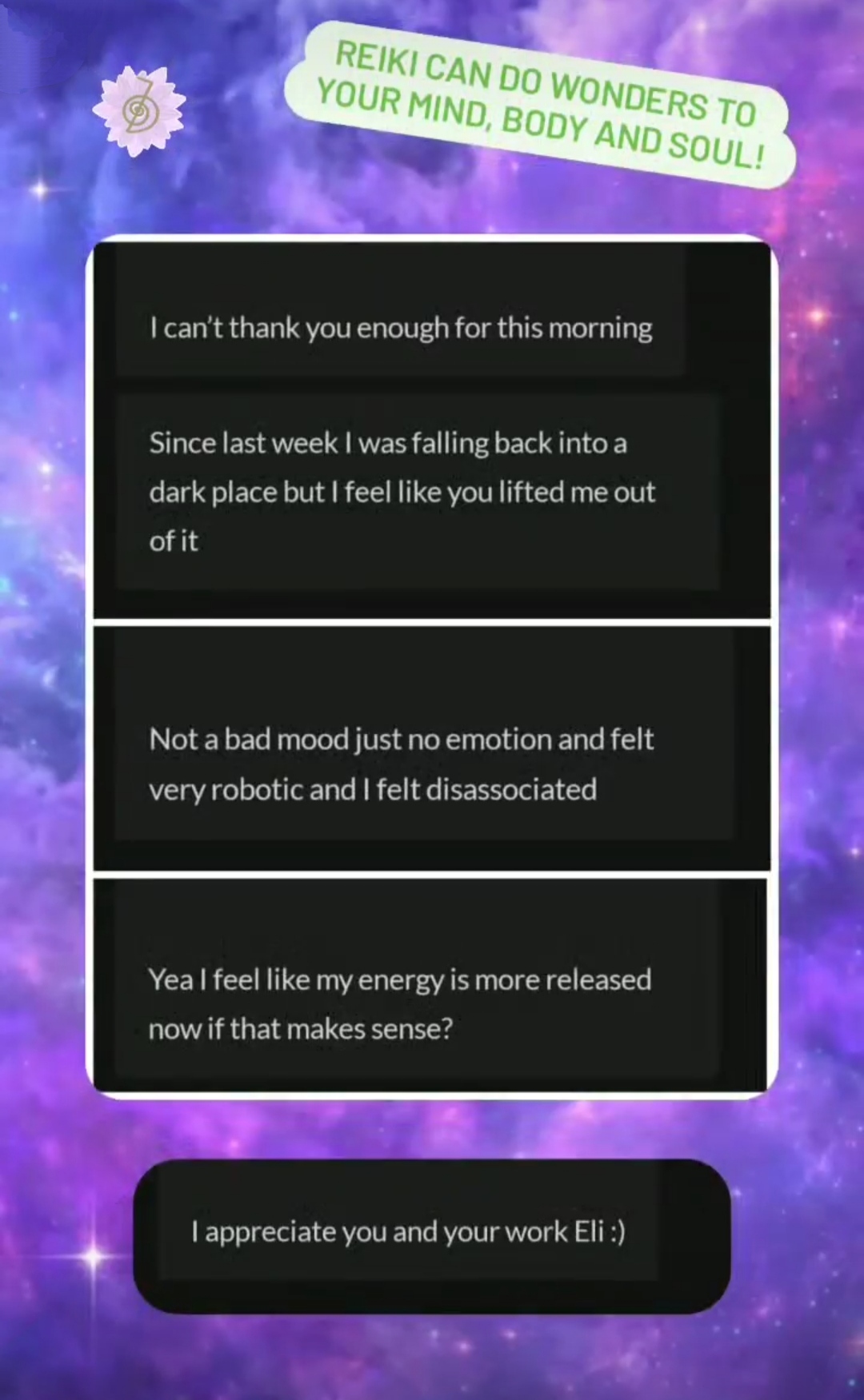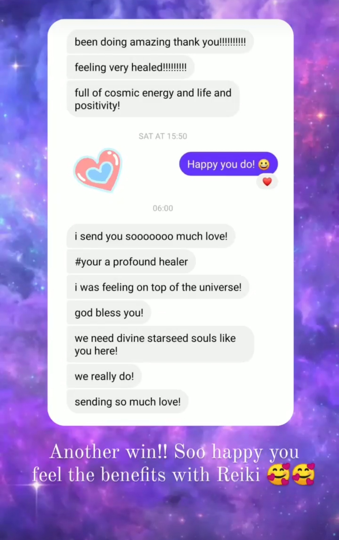 This is how Reiki heals. You have the power to change an unhealthy vibration in a person's body to a healthy vibration. With this, removing the energetic source and root of a persons illness and disease, coming back to the natural nature of BEing we are all born from.Energy healing is proven to reduce pain, ease stress, anxiety and depression, heal irritable bowel syndrome, Crohn’s disease and colitis, reduce heart rate and blood pressure, stimulate growth in bone, tendon and skin cells, improve mood, and help those suffering from aids, cancer and diabetes.